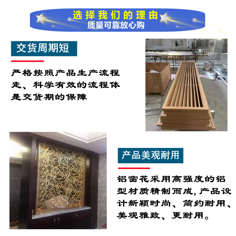 廣東澳冠鋁業科技有限公司是一家專業設計、開發、定制生產各規格屏風、窗花等的廠家,產品豐富多樣,廠里應